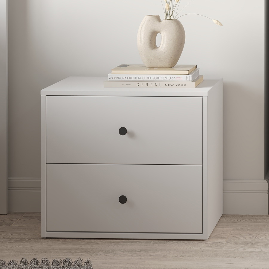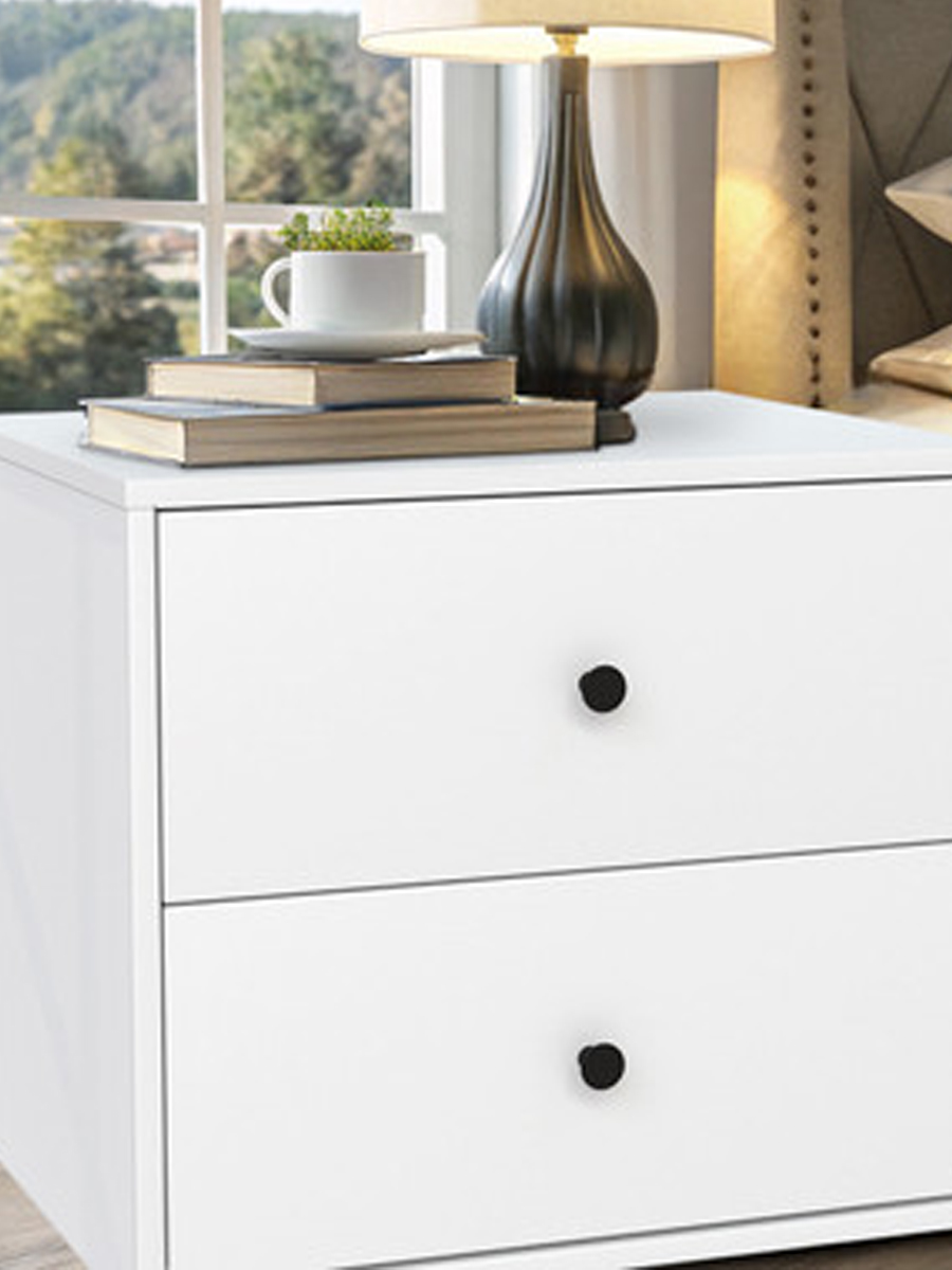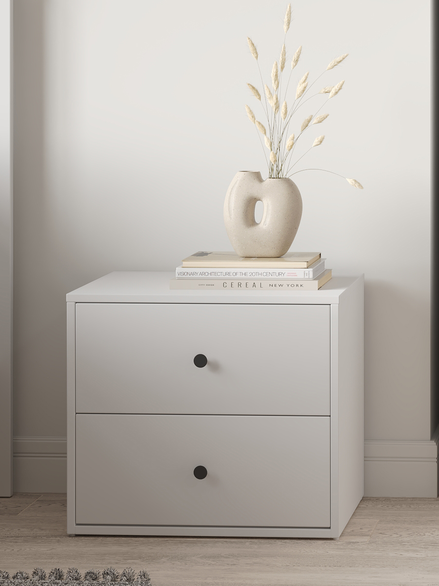 Тумба на 2 ящика — практичное и стильное решение для любой жилой комнаты или спальни. Изготовлена из шлифованного ДСП, покрытого пленкой, что придает изделию прочность и долговечность. Белый цвет фасада и каркаса добавляет комоду элегантности и современности, легко вписываясь в любой интерьер.